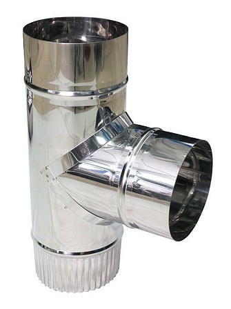 Используется для соединения дополнительного горизонтального участка дымового канала с основным вертикальным. Подключение "по дыму". Толщина стали 0,5 и 0,8 мм.