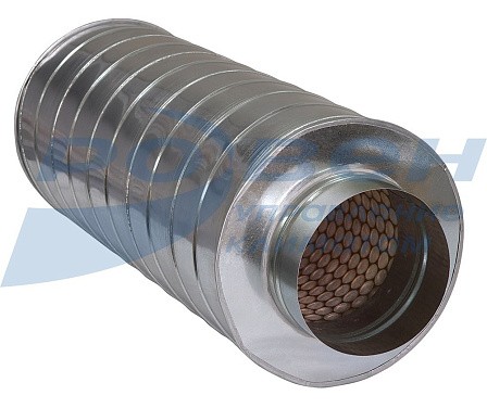 Шумоглушители прямоугольные ГТК - это два короба круглого сечения, соответственно, вставленные один в другой, между которыми находится звукопоглощающий материал. Причем, внутренний участок - перфорирован. Изготавливаются из оцинкованной стали.