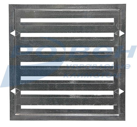 Решетки изготавливаются из оцинкованной стали, имеют подвижную заслонку, позволяющую осуществлять регулирование расхода воздуха за счет изменения площади живого сечения щелей решетки.